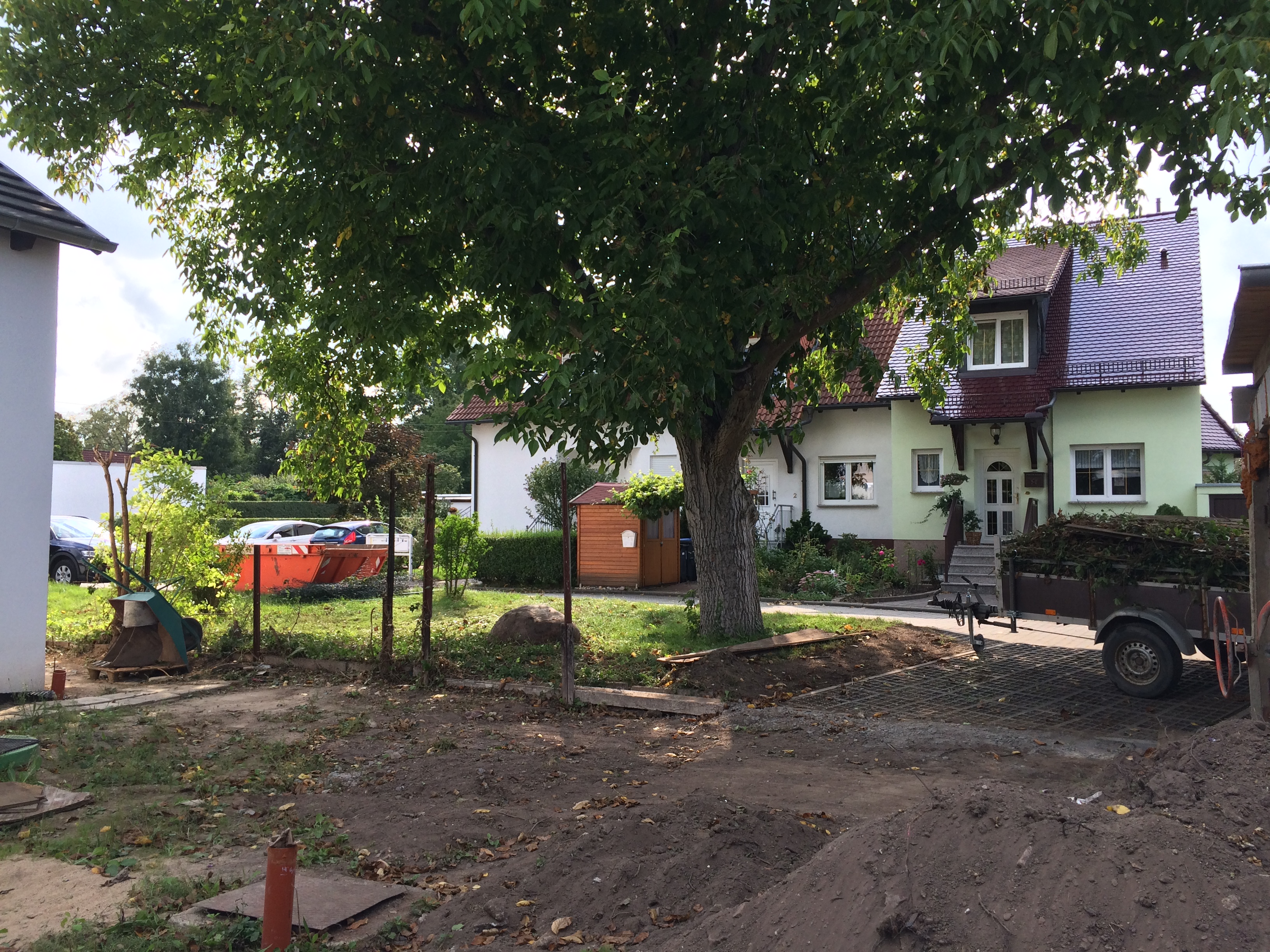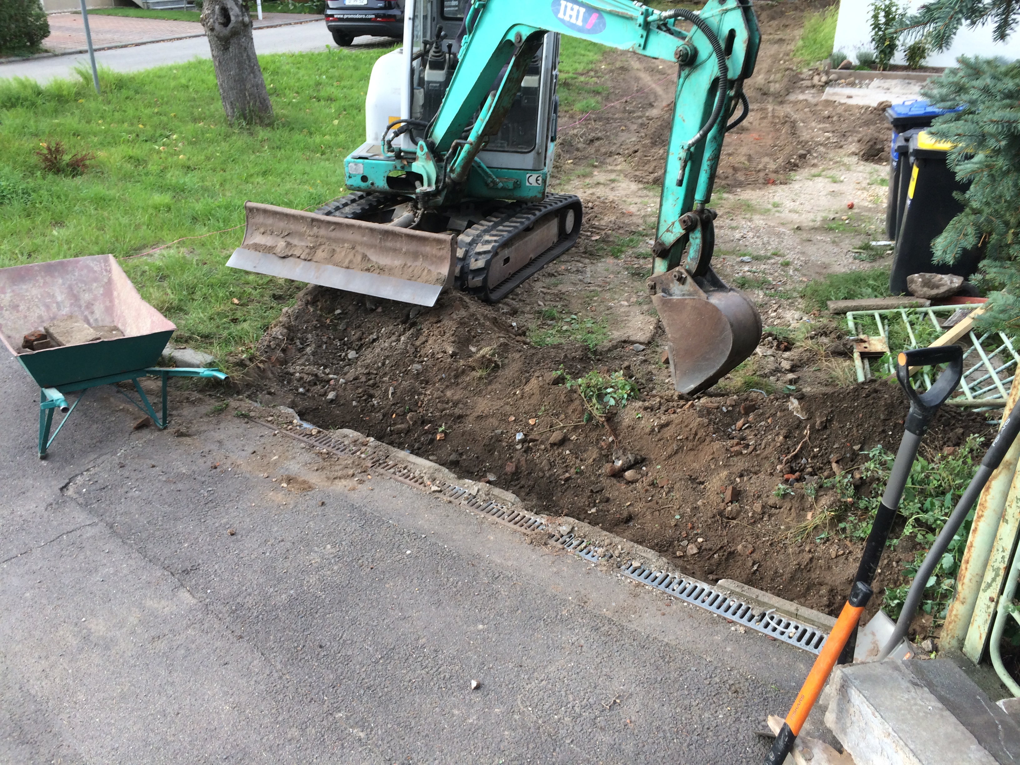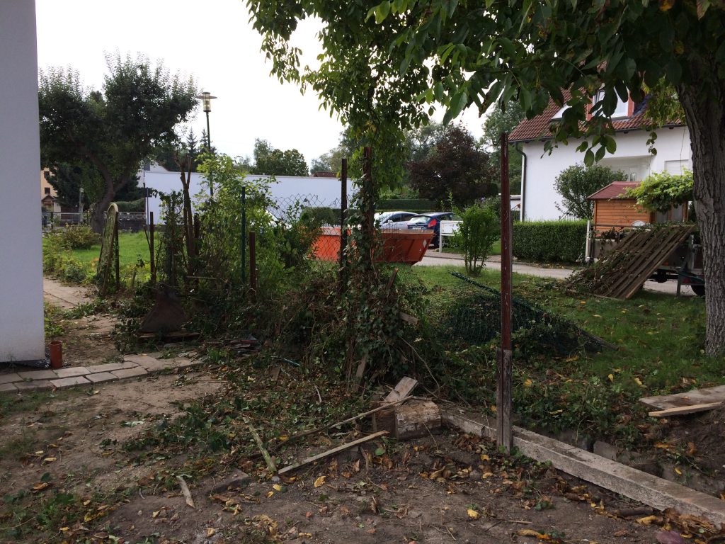 Alte Einfahrt Borde erhöht und Platz im Hof gemacht – alten Zaun und Grünzeug entfernt.