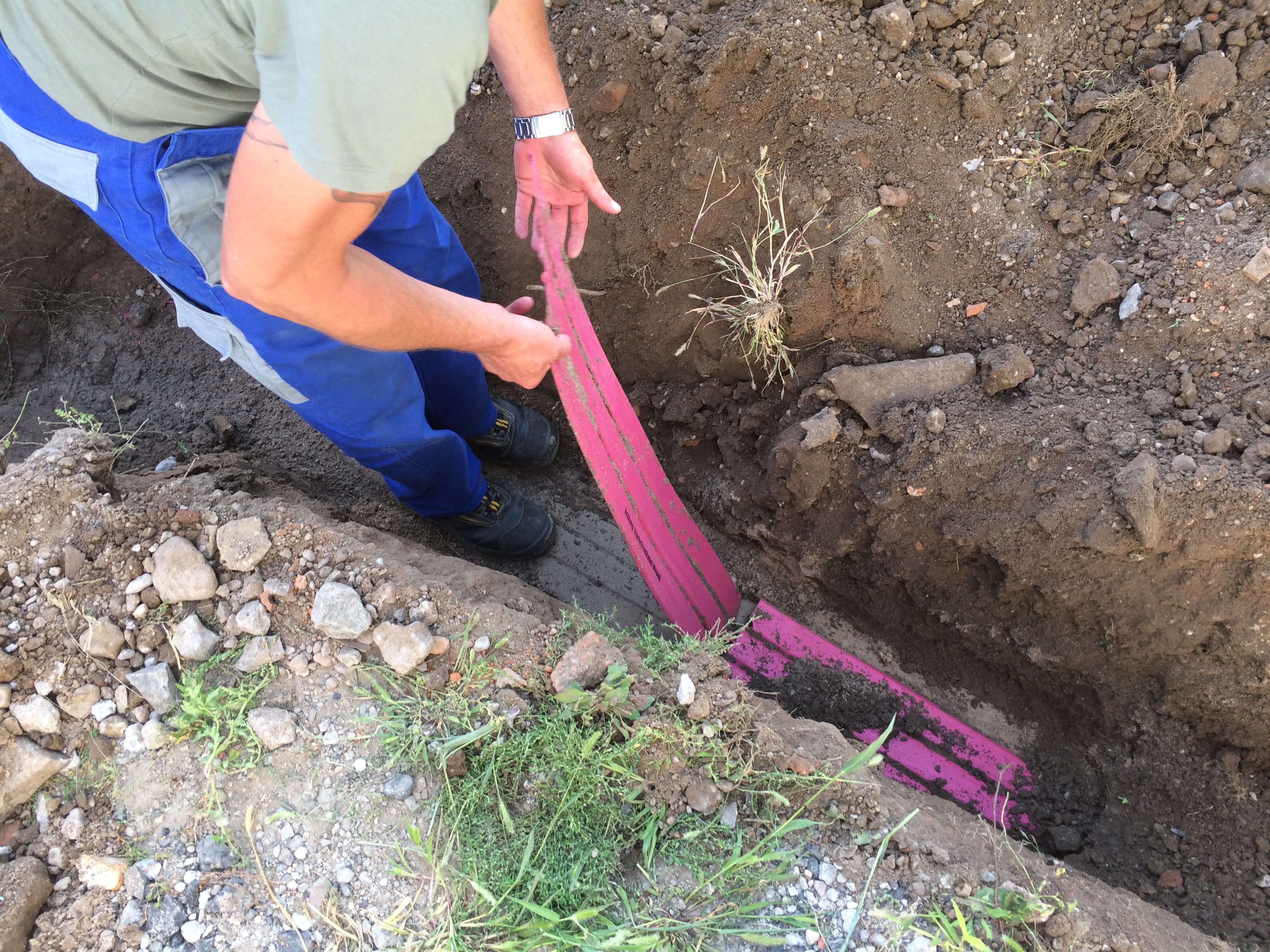 63kV Stromleitung und Breitbandkabel vielen dem nicht ganz so mini Minibagger zum Opfer.