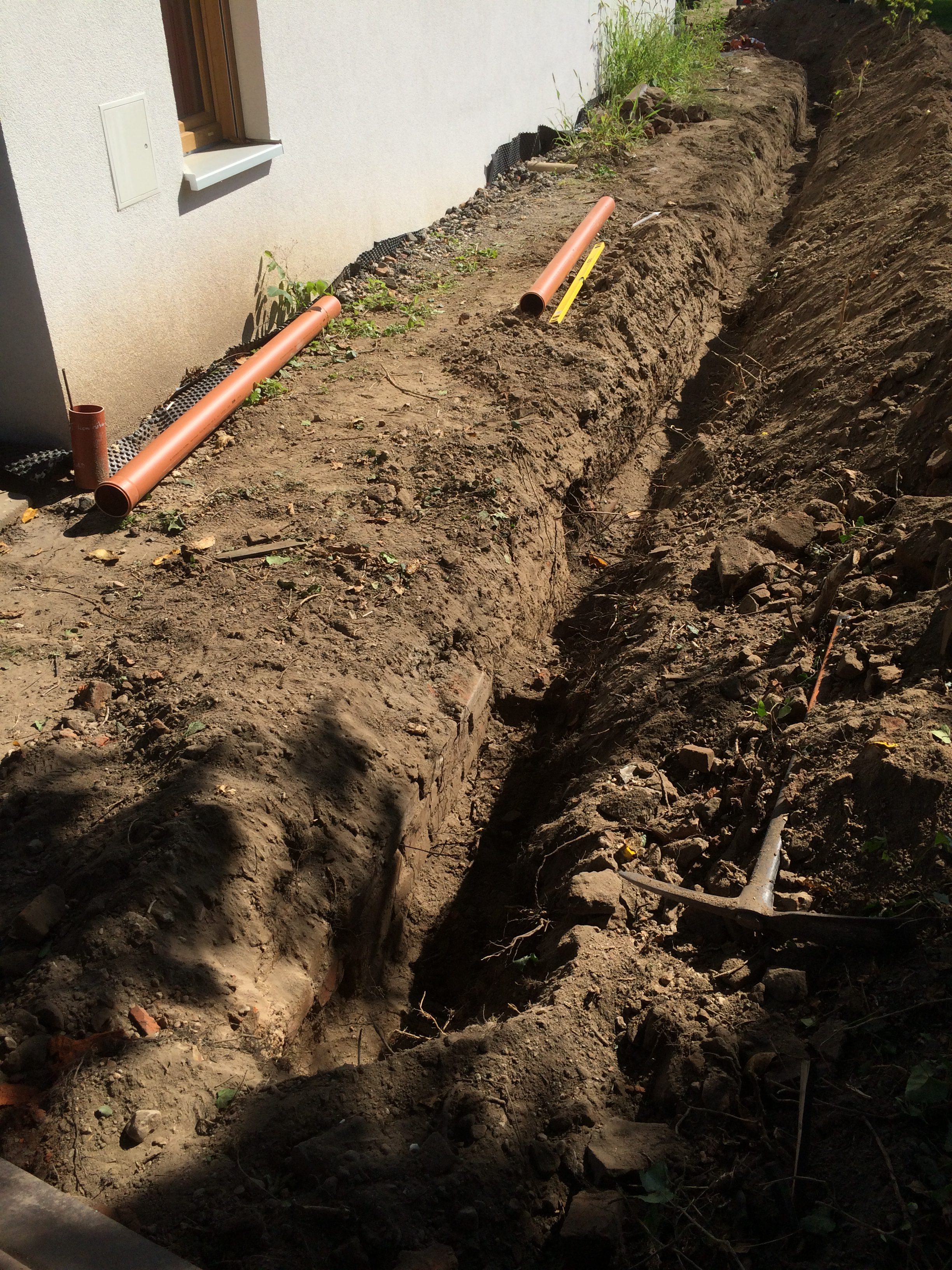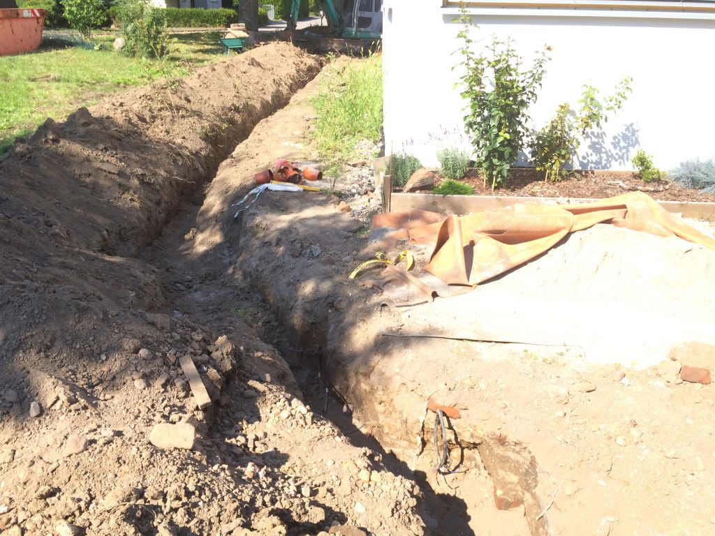 Das Problem: am Alten Zaun kurz vorm Hof befinden sich alte Fundamente in der Erde. Da ist Handarbeit gefragt und ich brauche für die letzten 5m so lange wie für den Ganzen Weg davor. Anstrengend und mit den agressiven „Kriebelmücken“ kein Spaß da schwitzend im Graben zu buddeln. Aber gut … ist erledigt … nächster Punkt.