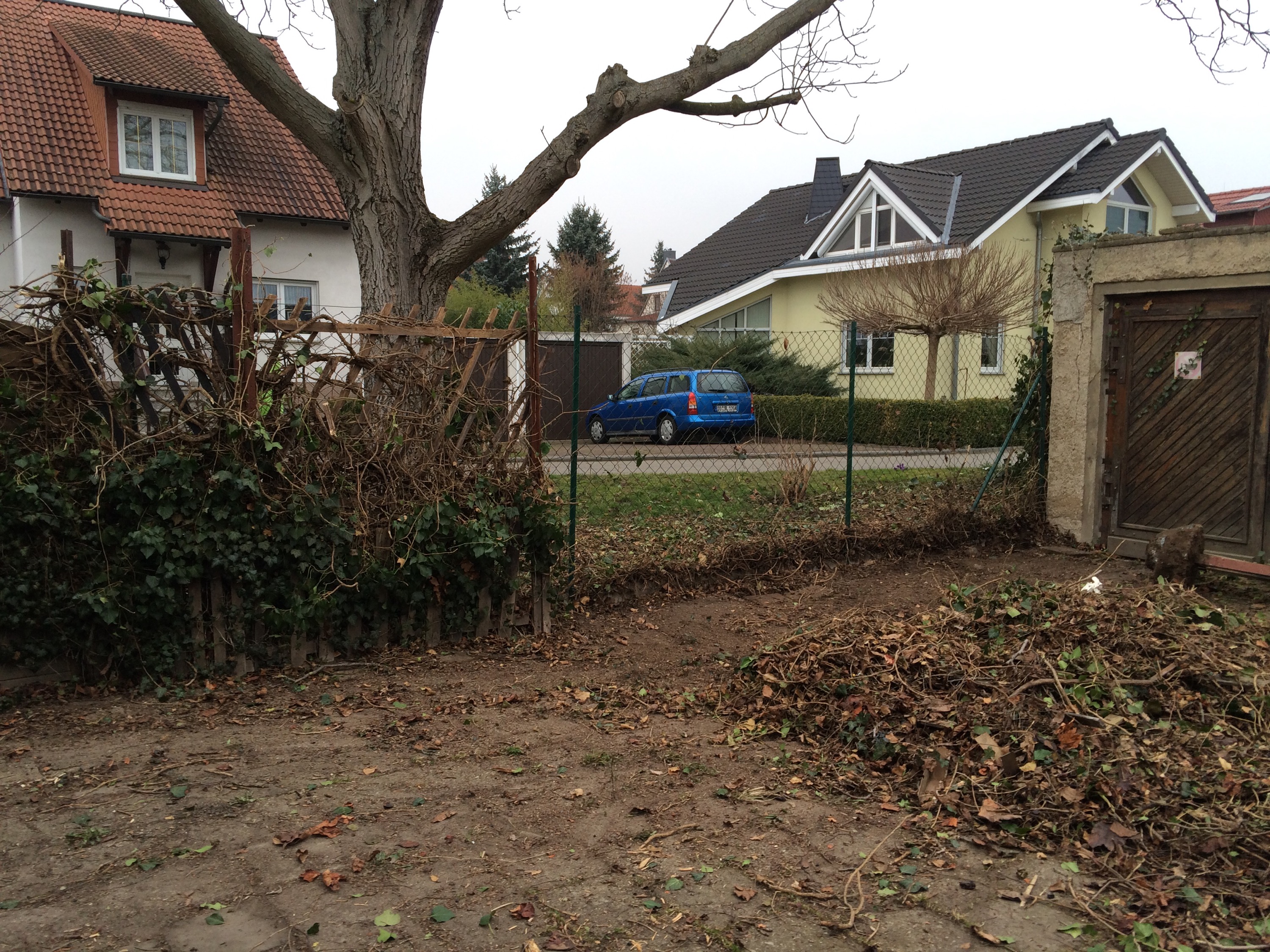 Dazu noch Dielung innen in zwei Räumen OG entfernt. Linoleum und alte Dämmung in Container verlanden und da der Containerdienst nicht mit dem großen Absetzer zur Einfahrt rein kommt muss ein neuer Zugang her. Die Sträucher habe ich schon mal entfernt.