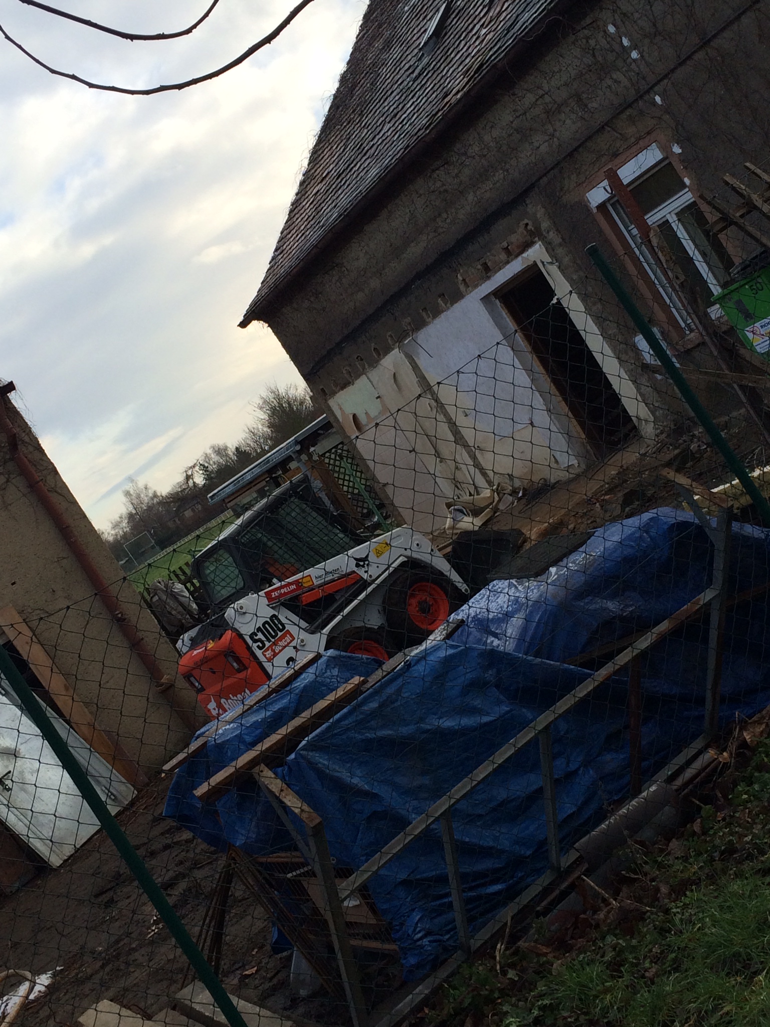 Kurz vor Weihnachten ging es nun endlich los und aus unserem Haus im Dornröschenschlaf wurde endlich eine richtige Baustelle. Das Team vom Massivbau Jahn rückt an und im Haus bleibt kein Stein auf dem Anderen. Auch wenn der Winter nicht die beste Zeit zum Bauen ist so geht es doch erstaunlich schnell voran…übrig bleibt ein leeres Haus…vier Wände und ein Dach.