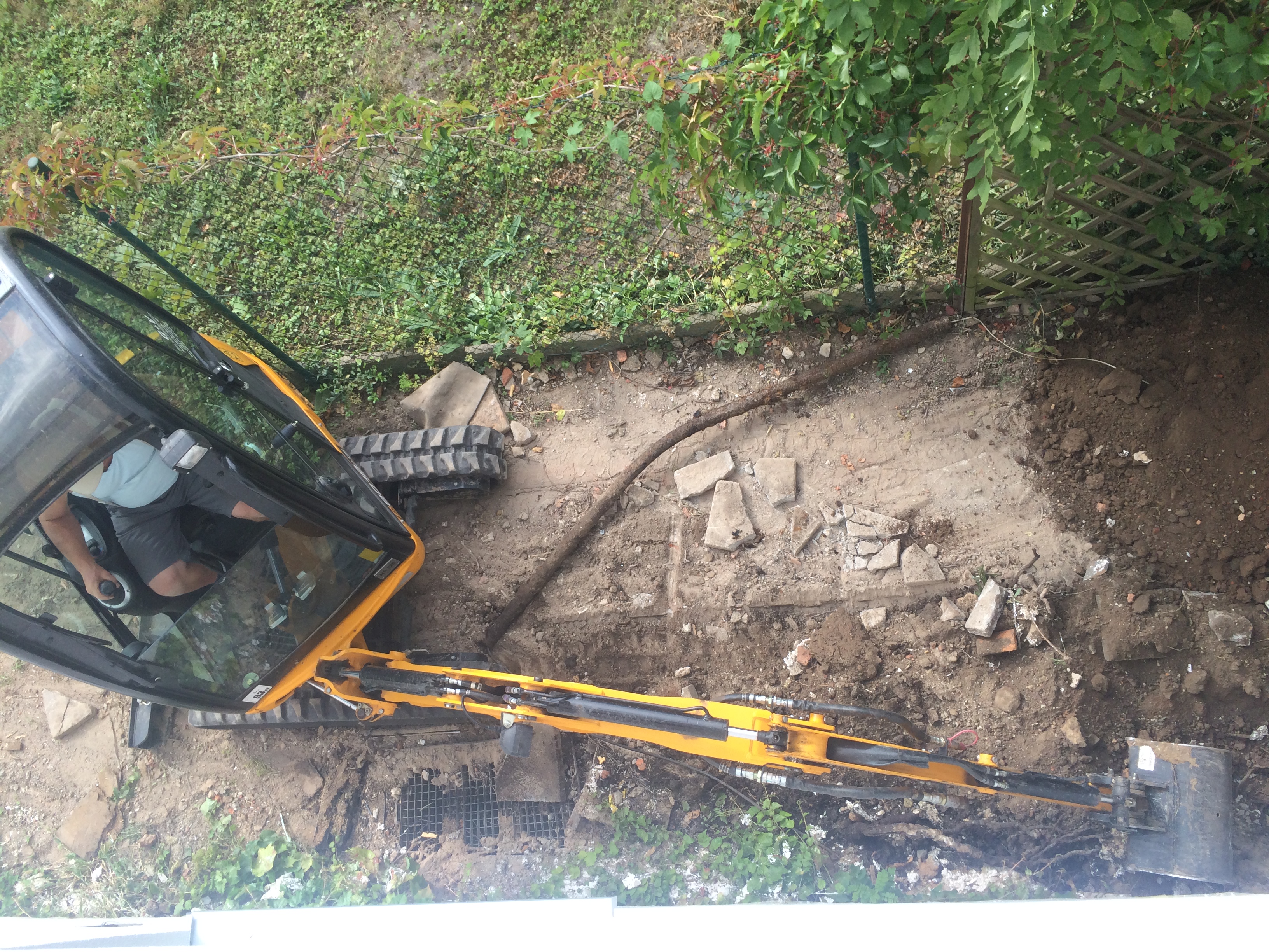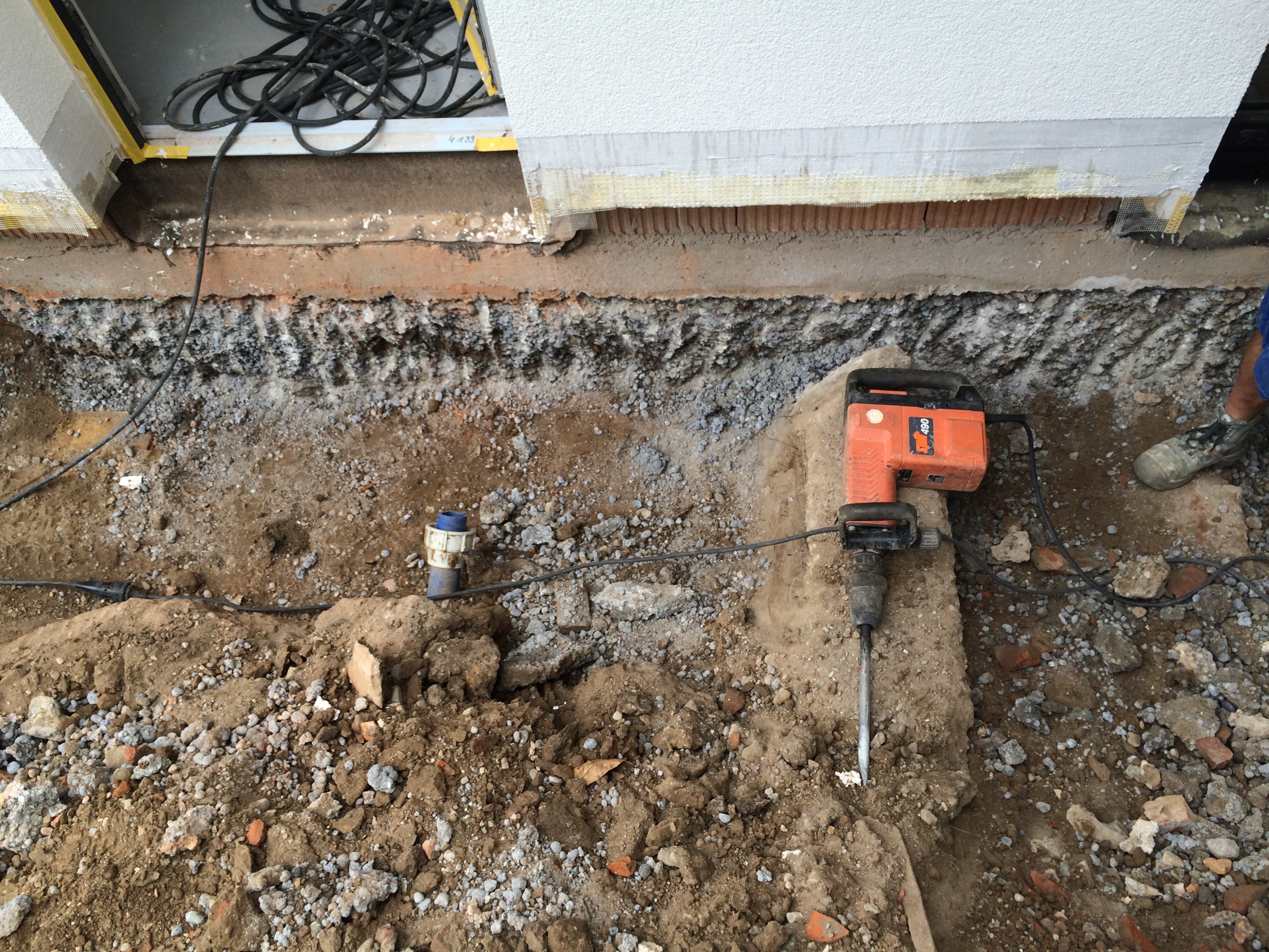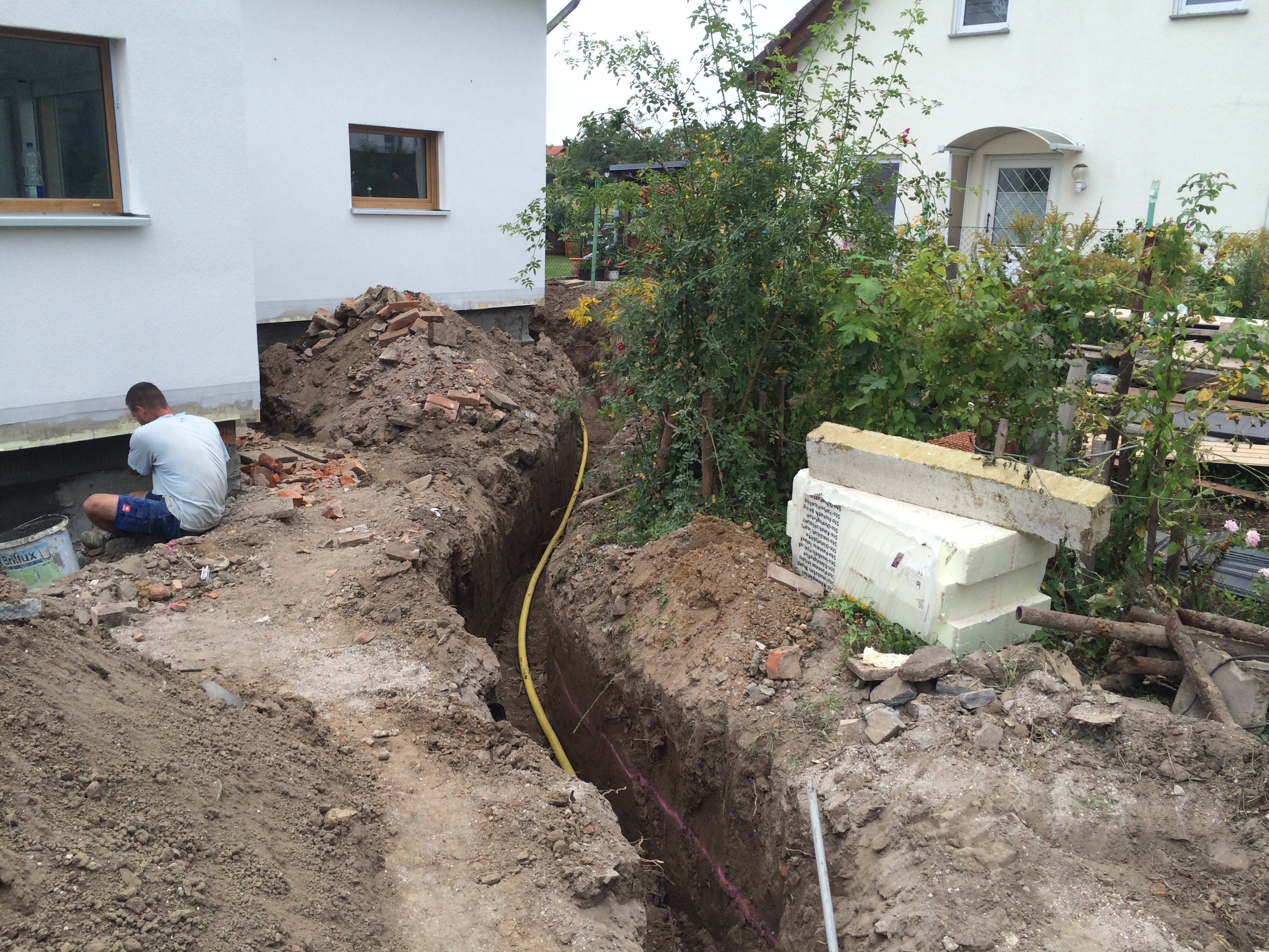 Ich war fleißig am terrassenunterbau beschäftigt… und habe die Medien vom Telekomkasten zum HWR verlegt … damit das nicht alles an unterschiedlichen Stellen ist, sondern alles an einer Stelle elektrisch anliegt.