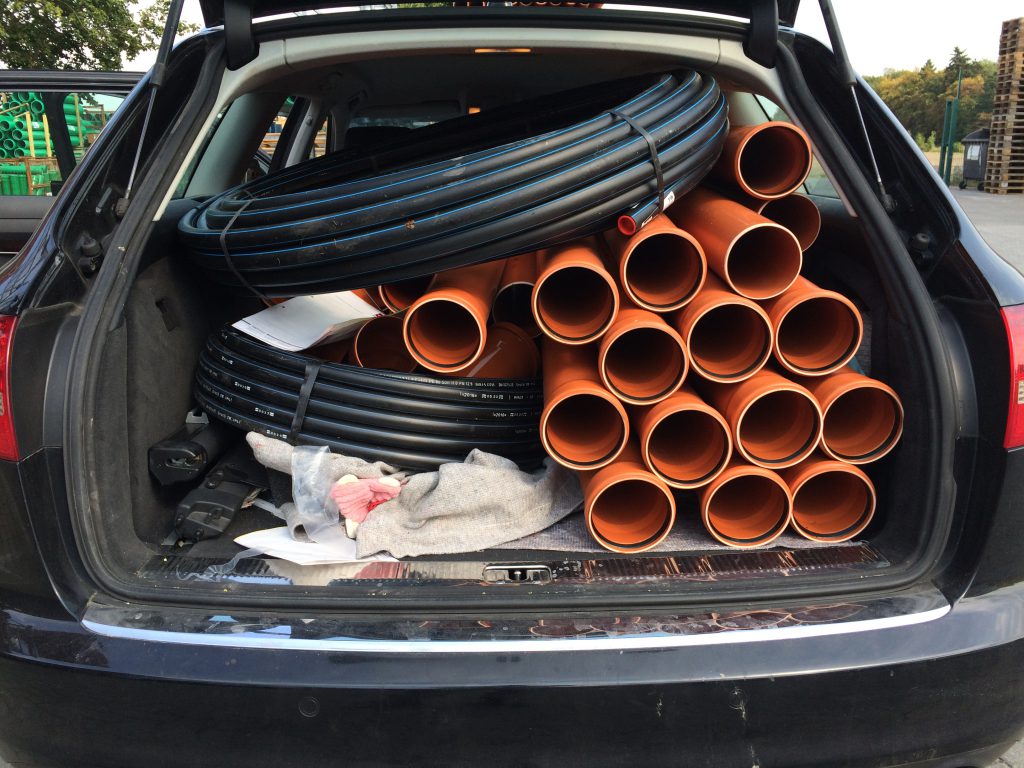 Zuerst in frostsicher Tiefe die neue PE Wasserleitung. Dazu einiges an Stromkabeln und leerrohre für den Weg zur Zisterne.