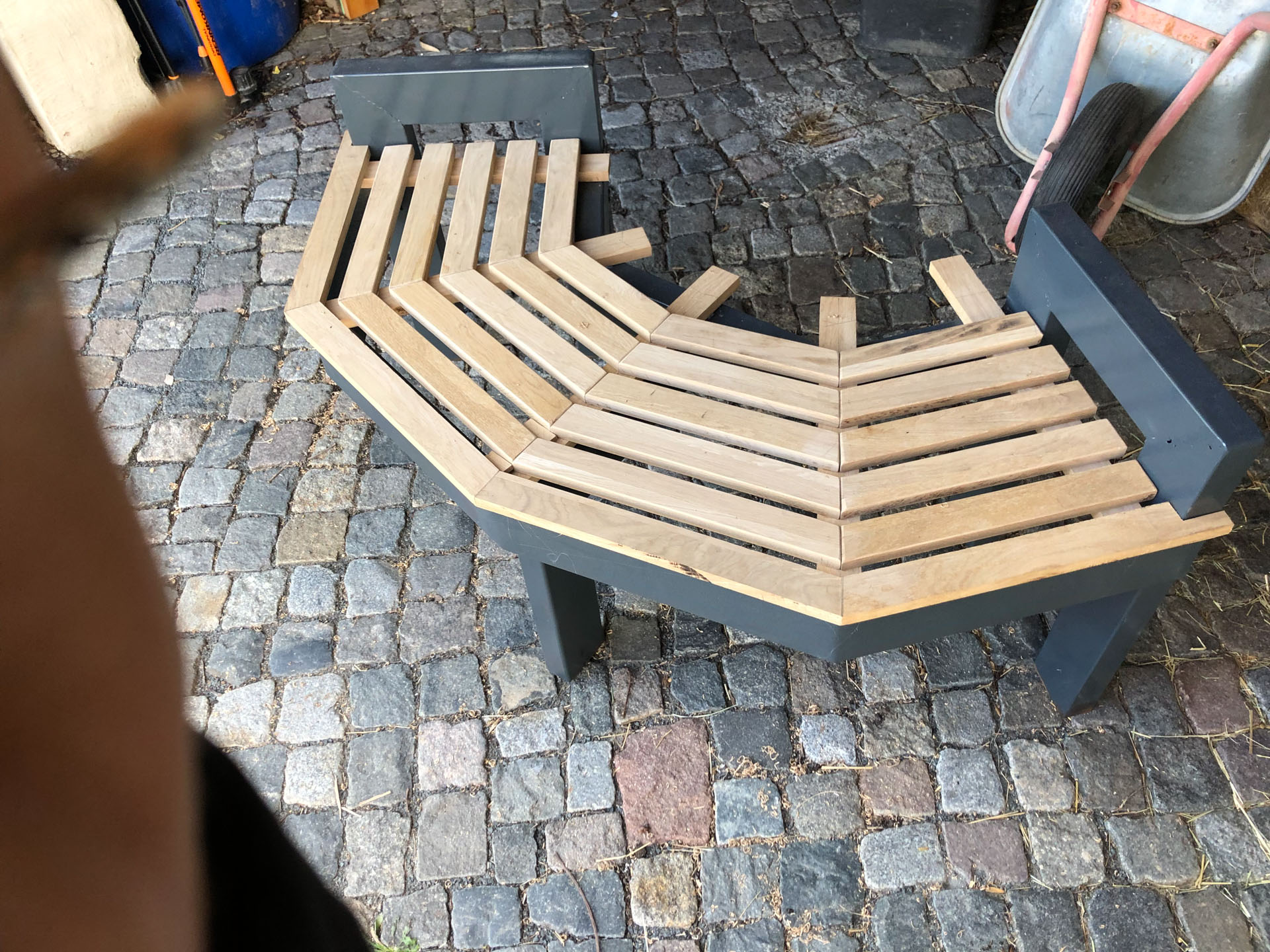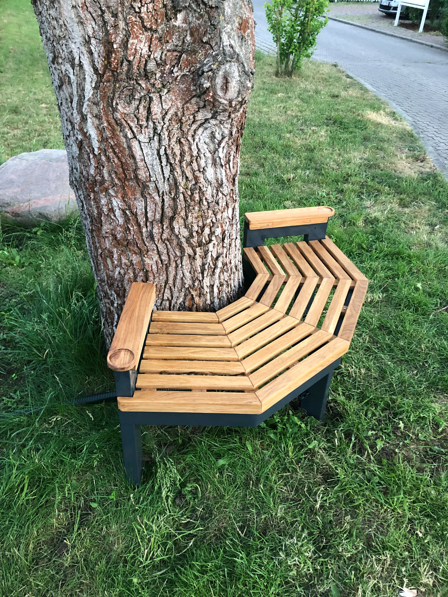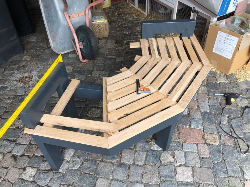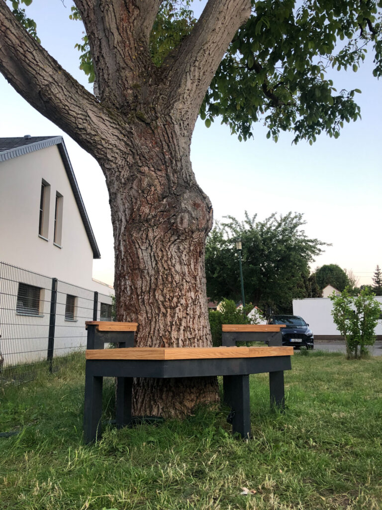 Als Kind habe ich viel unter der Linde am Hofeingang bei meinen Eltern gespielt. Wir haben auch so einen tollen alten Baum und sitzen in der Regel auf dem Bordstein, wenn die Kids auf der Straße spielen. Ich habe kurzerhand eine kleine Baumbank aus Stahl und Eiche gebaut. Hat wirklich Spaß gemacht endlich mal wieder was produktives zu tun. Das Ergebnis ist besser geworden als gedacht… und wird jeden Tag genutzt. Freut mich sehr! 🙂