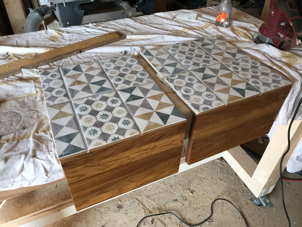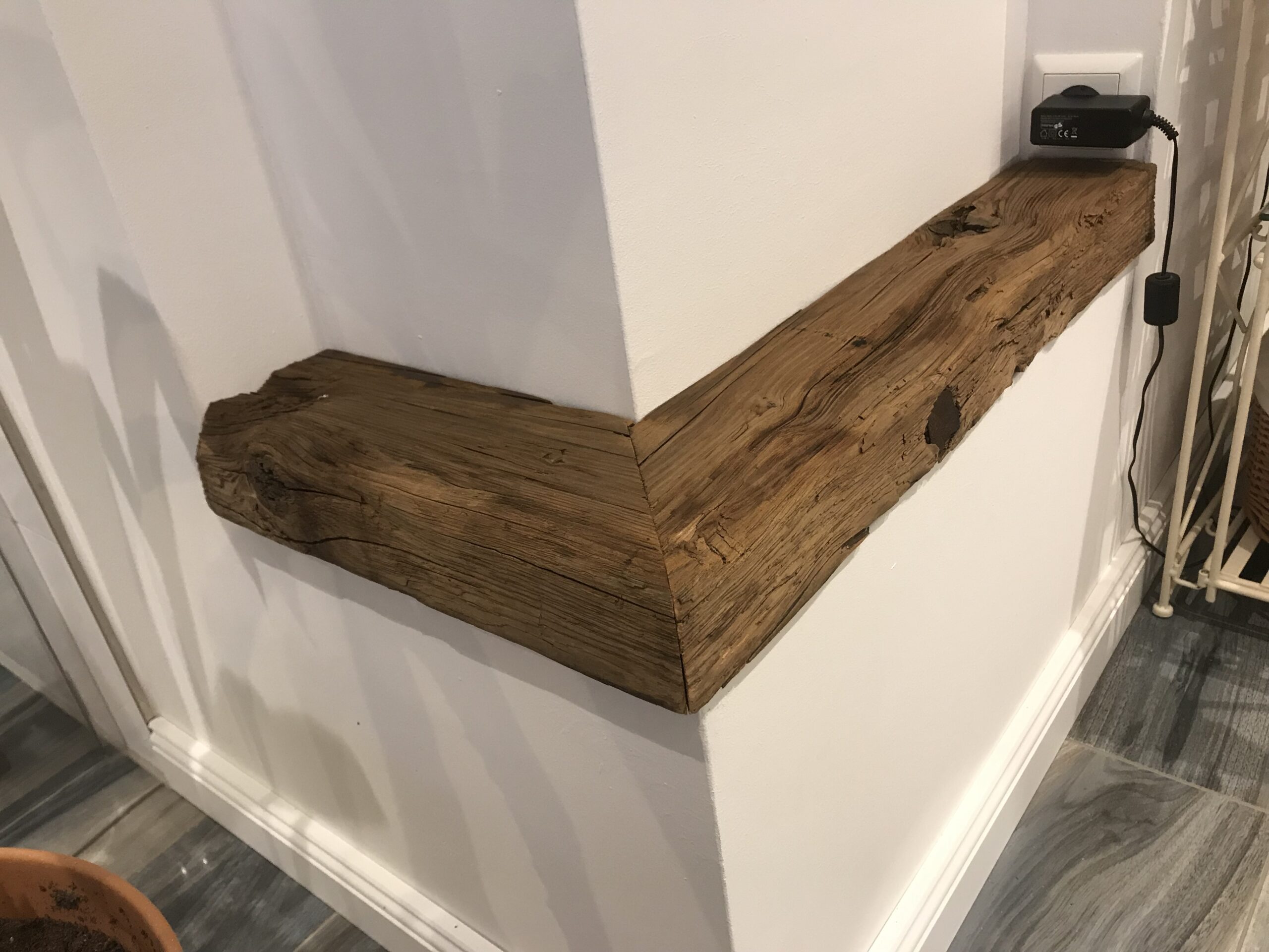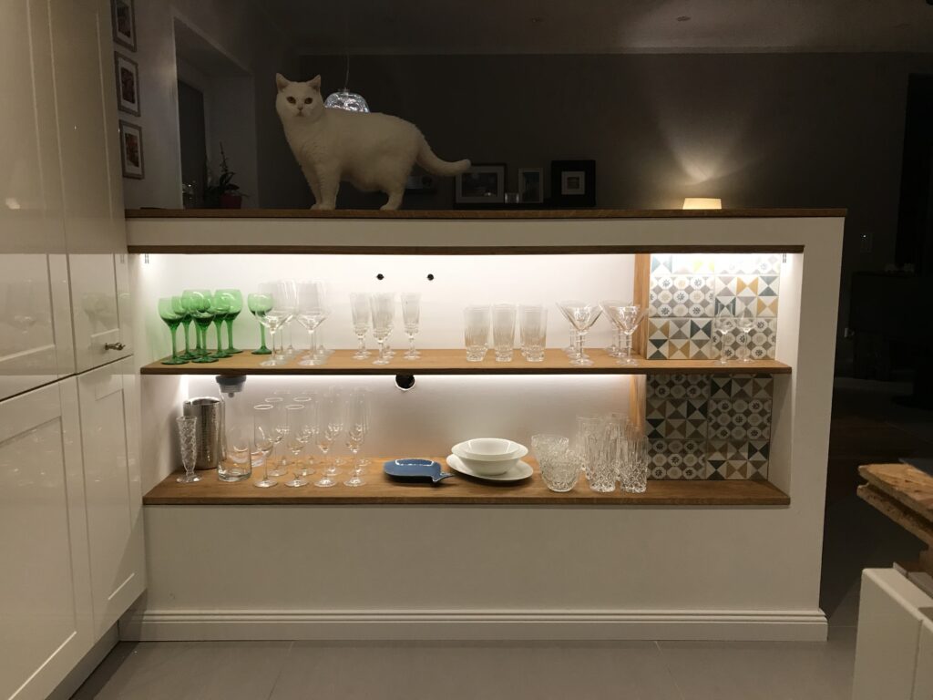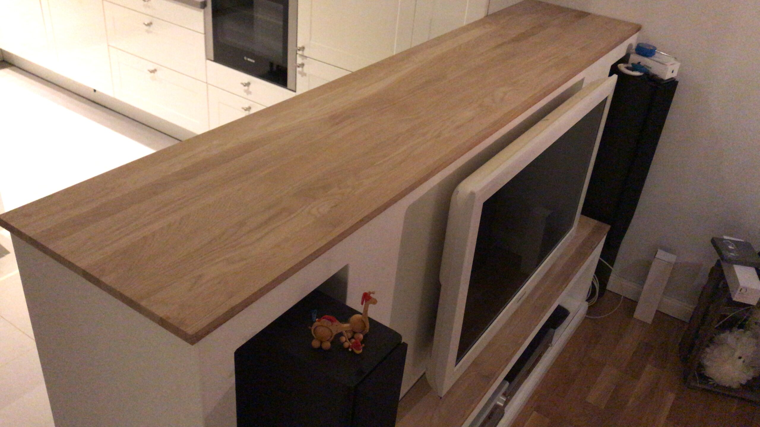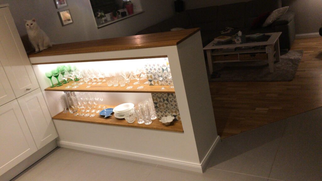 Ganz nebenbei hab ich auch noch die alten Balken für die Regale im Bad und einige Eichenabdeckungen für den Raumteiler gebaut. Ach und der Raumteiler an sich ist nun endlich auch finalisiert.