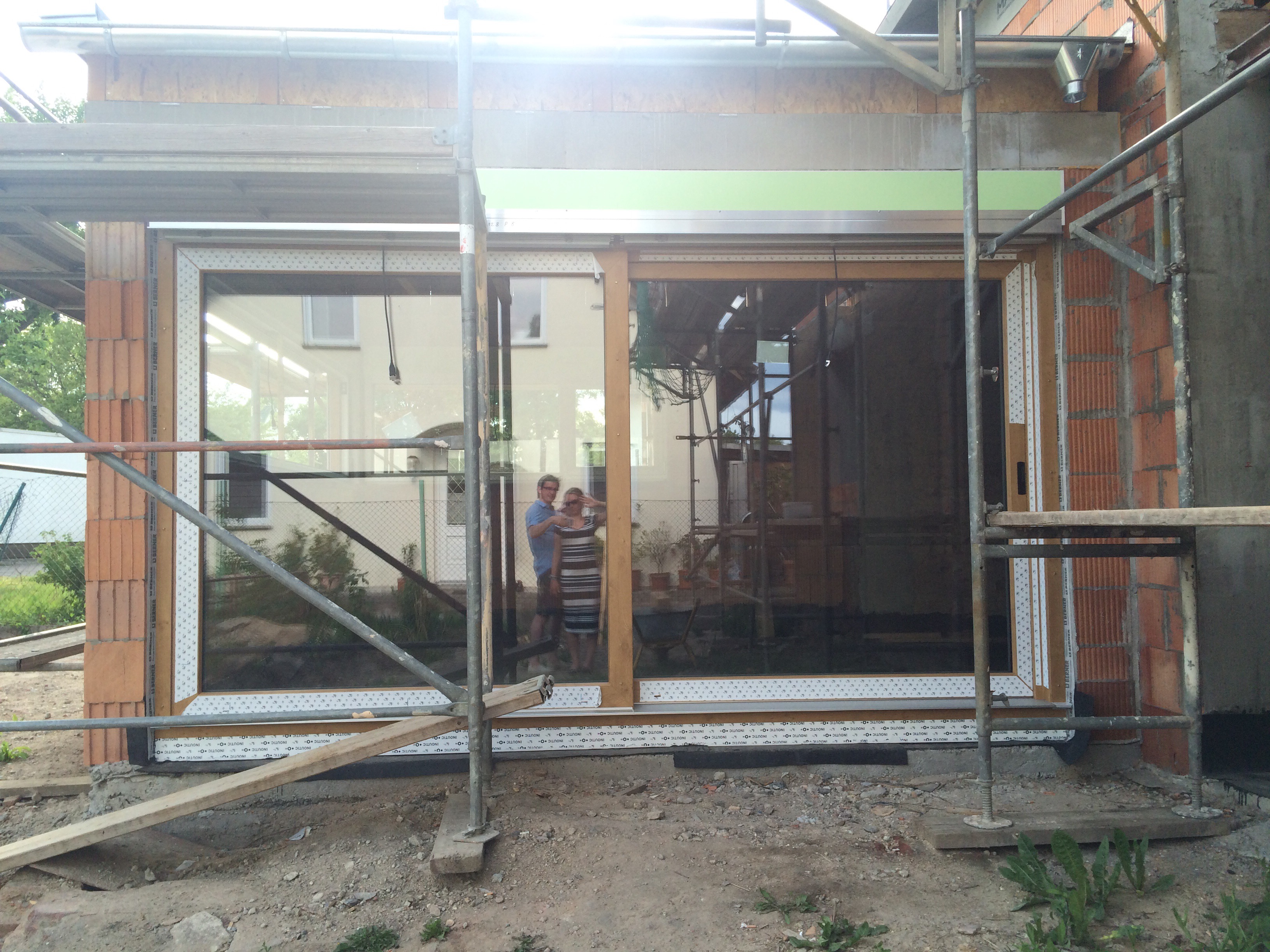 PS: Ja unser Sonderwunsch mit hochexklusiver Sonderfarbe ist Schuld an eine geringfügigem Bauverzug von 2 Monaten. Aber was solls. Sie sind drin. Die Fenster und das nahezu heile. Was ein Akt und so schön geworden.