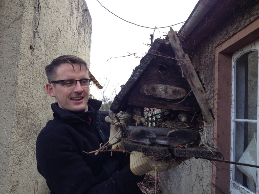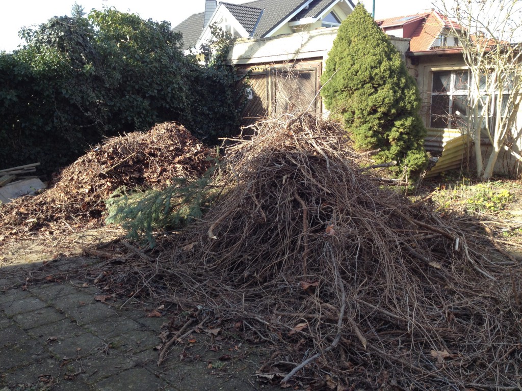 Equipment ist schon angeschafft… was wir damit machen? Das alte Gemäuer von seinem Gesträuch befreien! Dazu braucht es einen wütenden Vegetarier und viel Platz für große Haufen. Das Laub – wahrscheinlich vieler Herbsttage aus mehreren Jahren – wurde auch gleich mit beseitigt…der eine oder andere Fund kam zu Tage….aber zum Glück haben wir keinen Igel geweckt. Nur wer räumt das jetzt alles wieder weg… ähm… ich? 🙁