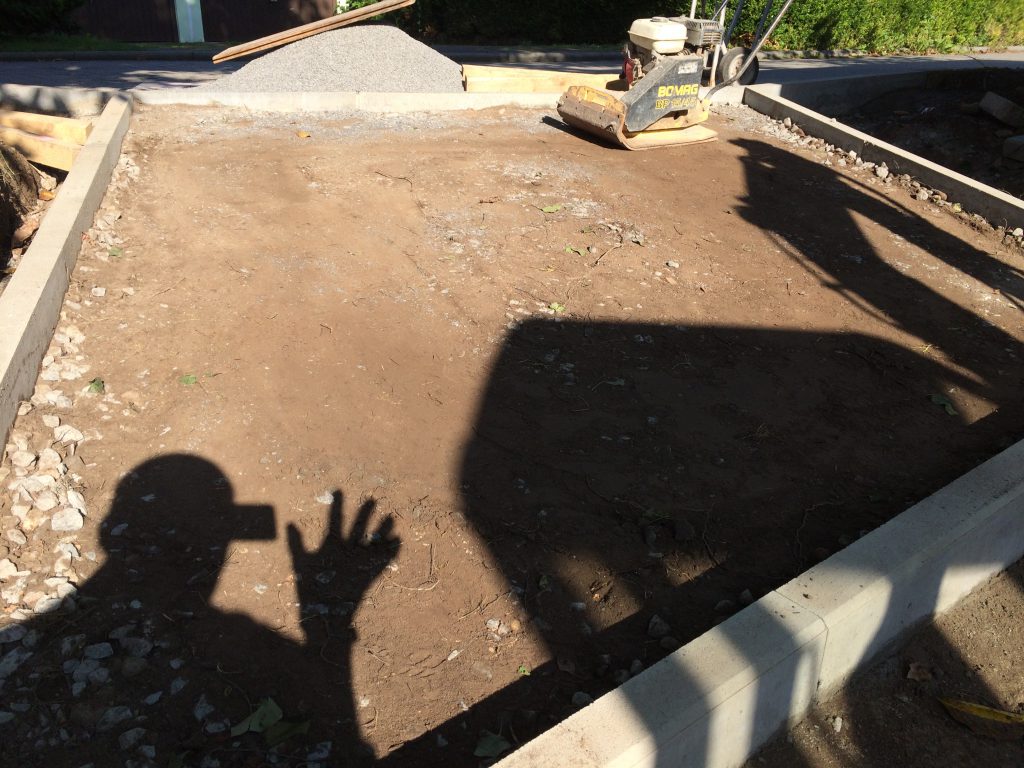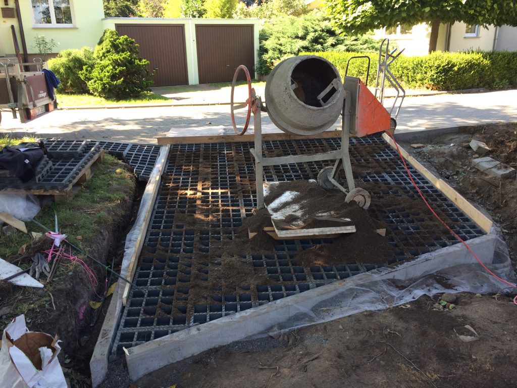 Der Aufbau war dann recht simpel… Frostschutz, Splitt, Borde in Beton und dann die Wabenplatten von TTE welche ich nur wärmstens empfehlen kann! Sie sind LKW-Überfahrbar und haben sich (Update) nach 5 Jahren keinen Zentimeter bewegt.