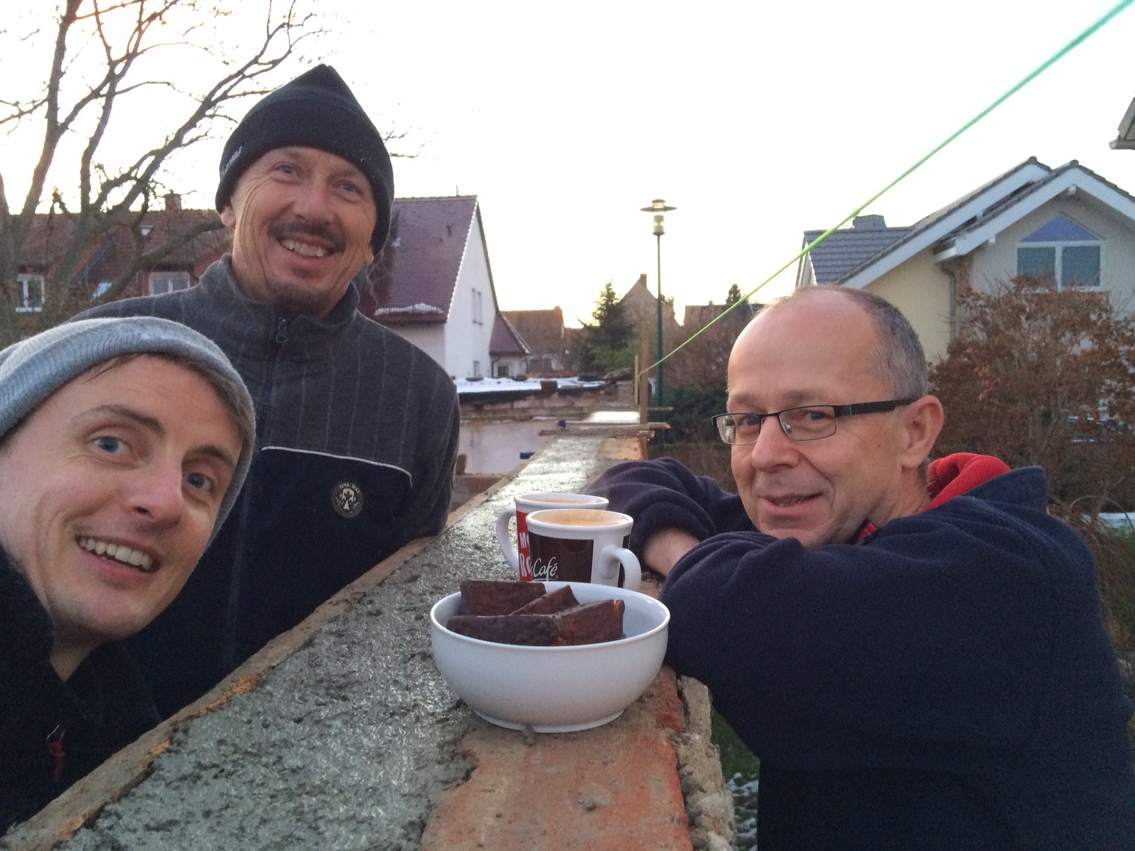 Auf gute Nachbarschaft 2.0: nachdem ich mit Olaf, unserem direkten Nachbarn, schon mehrfach freundlichen Smalltalk über den Zaun hatte ging es heute in die zweite Runde. Ich bat um ein „Date“ und wir verabredeten uns für heute Mittag. Ich platzte selbstverständlich – als hätte ich es geahnt 😉 – genau zum Mittag rein und wurde herzlich empfangen. Nach kurzem freundlichen „Hallo!“ waren wir beim Du und zwei Minuten später ich zum Mittag eingeladen. Entspannter hätte ich mir den ersten offiziellen Vorstellungstermin nicht vorstellen können.